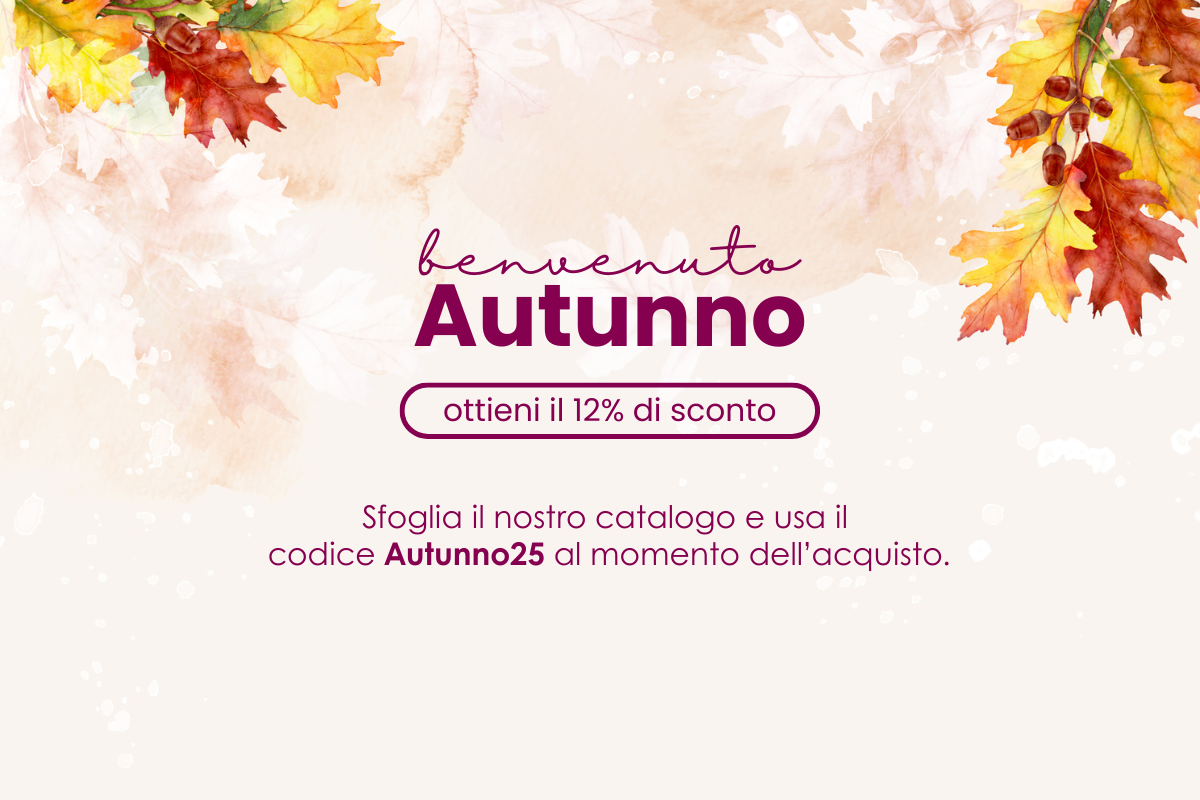 Per festeggiare l'arrivo dell'autunno, puoi approfittare dello sconto del 12% su tutti i nostri prodotti autunnali.