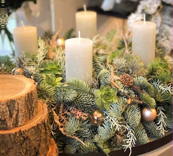 Esclusiva corona dell'avvento di pino profumato: una sinfonia di verde rigoglioso e note aromatiche che trasforma ogni spazio in un rifugio accogliente.