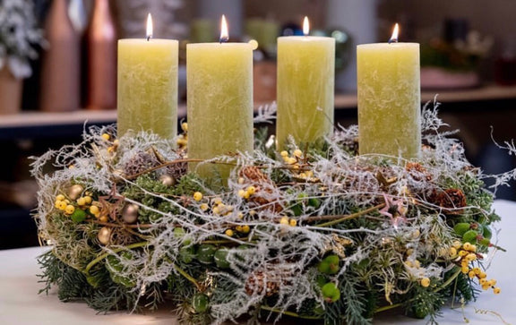 Incantevole composizione natalizia che crea un'atmosfera di dolce attesa e raffinato fascino.